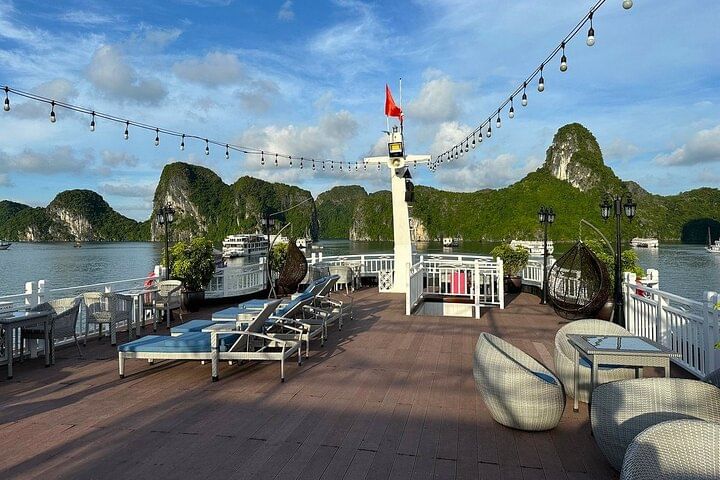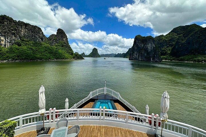 Onboard, guests can enjoy a fine dining restaurant serving gourmet cuisine, a spa with rejuvenating treatments, and a variety of entertainment options. The itinerary includes visits to iconic sites such as Sung Sot Cave, Titop Island, and Luon Cave, along with activities like kayaking and hiking. Combining relaxation, adventure, and world-class hospitality, we promise an extraordinary journey through one of Vietnam’s most spectacular destinations.