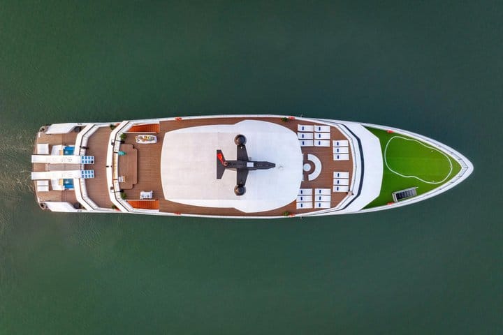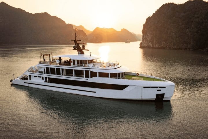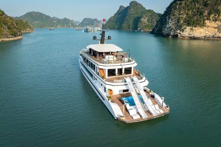 Depart from Hanoi and enjoy an unforgettable day cruising through the spectacular landscapes of Ha Long Bay and Lan Ha Bay aboard a luxury 5-star vessel. Sail past dramatic limestone karsts, peaceful lagoons, and emerald waters while relaxing on the panoramic sundeck. Along the journey, enjoy premium service, engaging activities, and a gourmet lunch featuring Vietnamese and international cuisine—creating the perfect blend of natural beauty, comfort, and indulgence in one remarkable day.