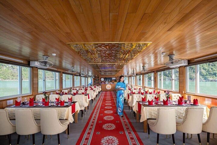 Experience the best of Halong Bay in one deluxe day cruise with a set menu lunch and exciting kayaking. Depart from Hanoi or meet directly at Tuan Chau Marina, and cruise through stunning limestone karsts and emerald waters. Visit the famous Surprising Cave, kayak or take a bamboo boat at Luon Cave, and relax or hike at Titov Island for panoramic views. Enjoy a delicious lunch onboard and unwind with a sunset tea party on the sundeck. This premium day tour is perfect for travelers seeking comfort, adventure, and the natural beauty of Halong Bay.
