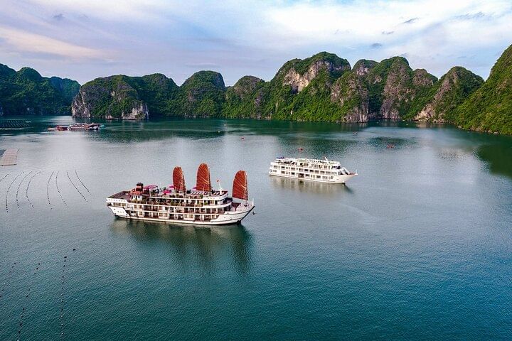 Sail through the breathtaking beauty of this UNESCO World Heritage site, uncover hidden gems, and savor the rich flavors of freshly prepared Vietnamese cuisine. Bask in the sun on the spacious sundeck as majestic limestone karsts glide past, and let each moment become a memory to treasure. As evening falls, sip a refreshing cocktail under a sky full of stars, with the mystical landscape of the bay all around you. This is more than a cruise—it’s a once-in-a-lifetime experience you won’t want to miss.