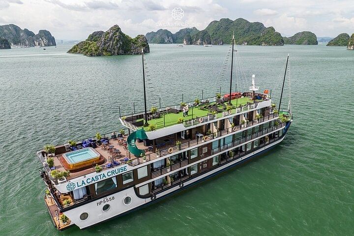 Experience the best of Ha Long and Lan Ha Bay on this 3-day, 2-night Luxury La Casta Cruise. Enjoy breathtaking views as you sail, with stops for kayaking and a cycling tour through a historic village. All meals are included, and you can choose from three cabin categories—each featuring a private balcony. Accommodation in a cabin with a balcony is guaranteed. An English-speaking guide is onboard to enhance your journey. Free activities include kayaking, Tai Chi sessions, and a cooking class, making your cruise both relaxing and adventurous.