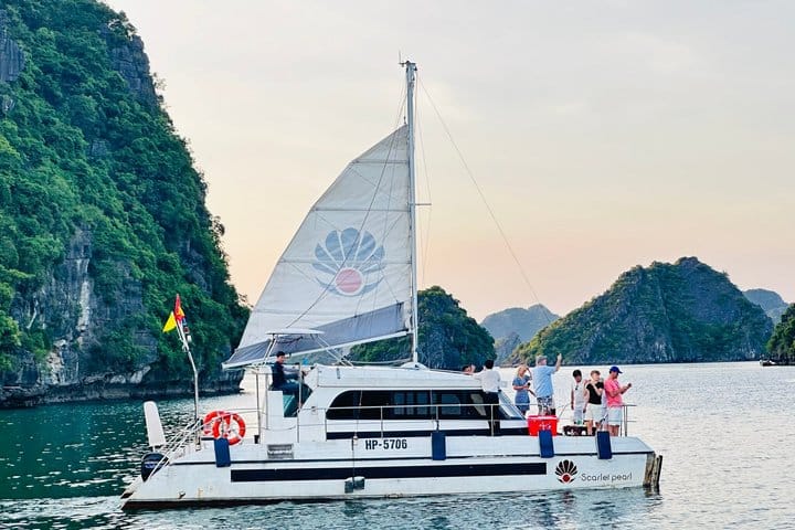 Experience an unforgettable journey with Scarlet Pearl Cruise on a 2 days 1 night luxury tour exploring the breathtaking beauty of Ha Long Bay and Lan Ha Bay from Hanoi. This premium cruise offers a perfect combination of relaxation and adventure, where guests can admire spectacular limestone karsts, kayak through hidden lagoons, discover fascinating caves, swim in emerald waters, and enjoy delicious Vietnamese and international cuisine on board. With elegant facilities and stunning natural scenery, this Ha Long – Lan Ha Bay cruise is an ideal choice for travelers seeking a memorable overnight cruise experience in one of Vietnam’s most famous UNESCO World Heritage landscapes.